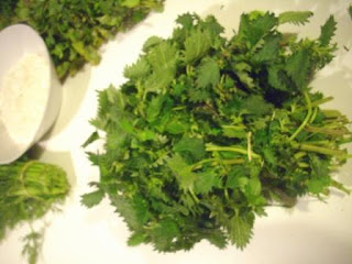 Ένα κιλό τσουκνίδες: Τις πλένετε με πολύ νερό και κρατάτε μόνο τα φύλλα και τα πολύ τρυφερά κοτσάνια.