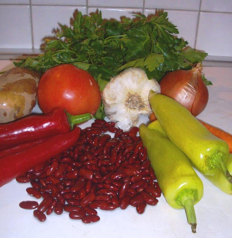 500 γραμμάρια φασόλια (Το καλύτερο είναι να χρησιμοποιήσετε κόκκινα φασόλια ή “red kidneys”. Προς Θεού, μην πάρετε την κονσέρβα με τα έτοιμα βρασμένα! Ο Γελωτοποιός βρήκε ελληνικά κόκκινα φασόλια στη λαϊκή αγορά σε τιμή ανάλογη των μέτριων άσπρων φασολιών. Αλλά μπορείτε να χρησιμοποιήσετε και μπαρμπούνια ή γίγαντες –που αρέσουν και πιο πολύ στα παιδιά).
